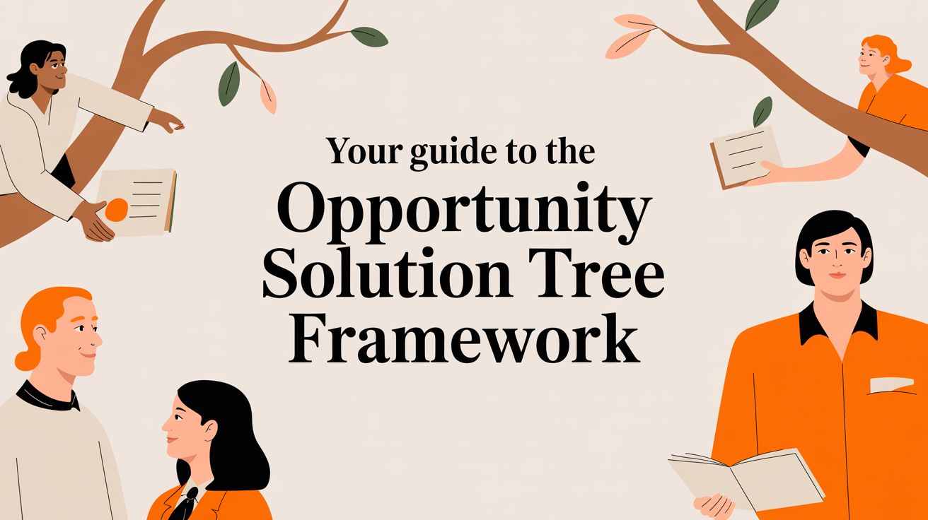 Ever heard of an Opportunity Solution Tree? It’s a brilliant visual tool that helps product teams untangle the messy journey from a big-picture business goal to the actual features you end up building. Think of it as a map that clearly connects your high-level business ambitions to real customer problems (which we call opportunities), and then links those problems to potential features (your solutions). This simple structure makes sure every single bit of development work is directly aimed at creating value you can actually measure.